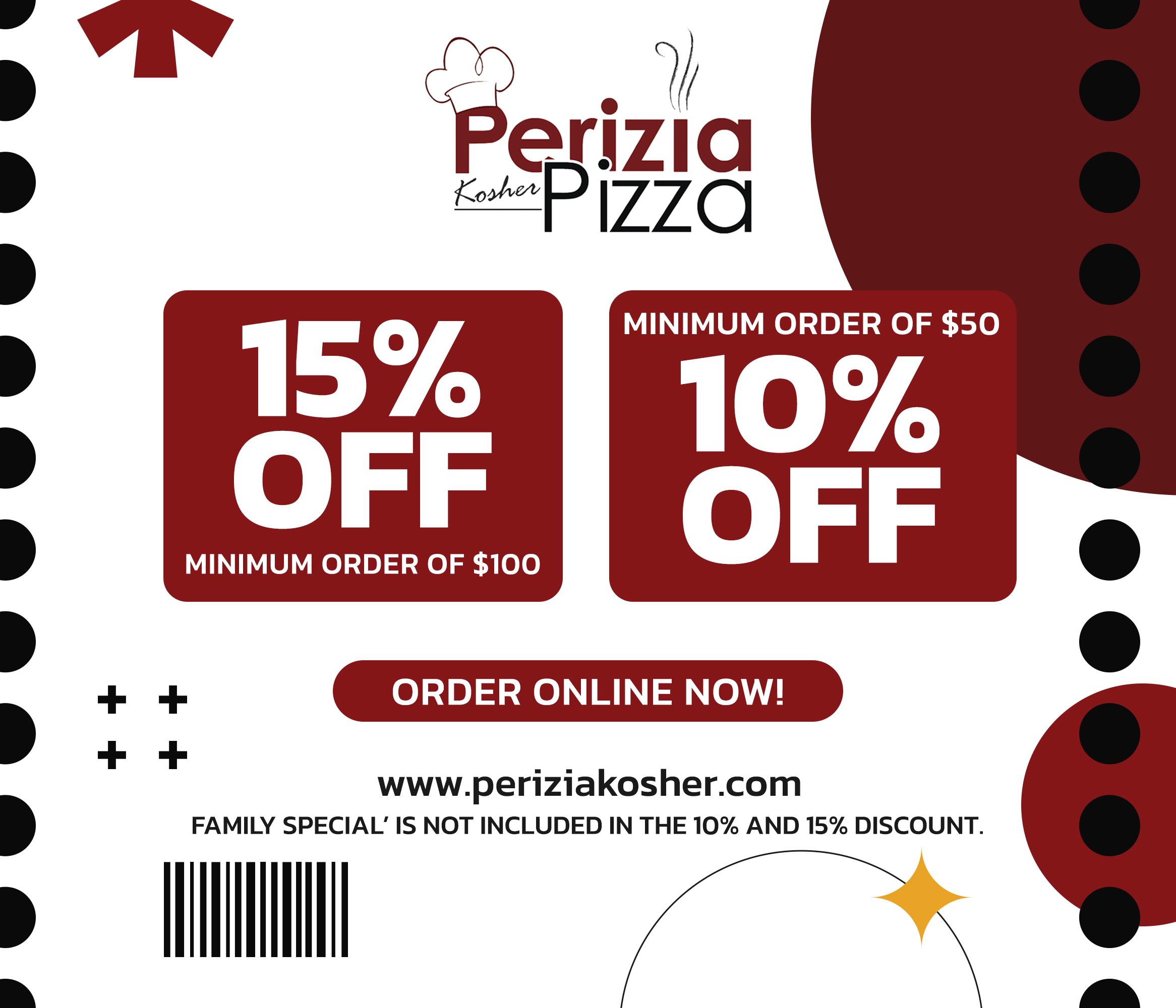 We don’t just make pizza. We make people’s days. Perizia Kosher Pizza was built on the belief that pizza should be special, and we carry that belief into everything we do. Counter-serve pizzeria offering kosher pies, plus knishes, falafel & a range of salads. Under the Strict Kosher supervision of Kehilah Kashrus.